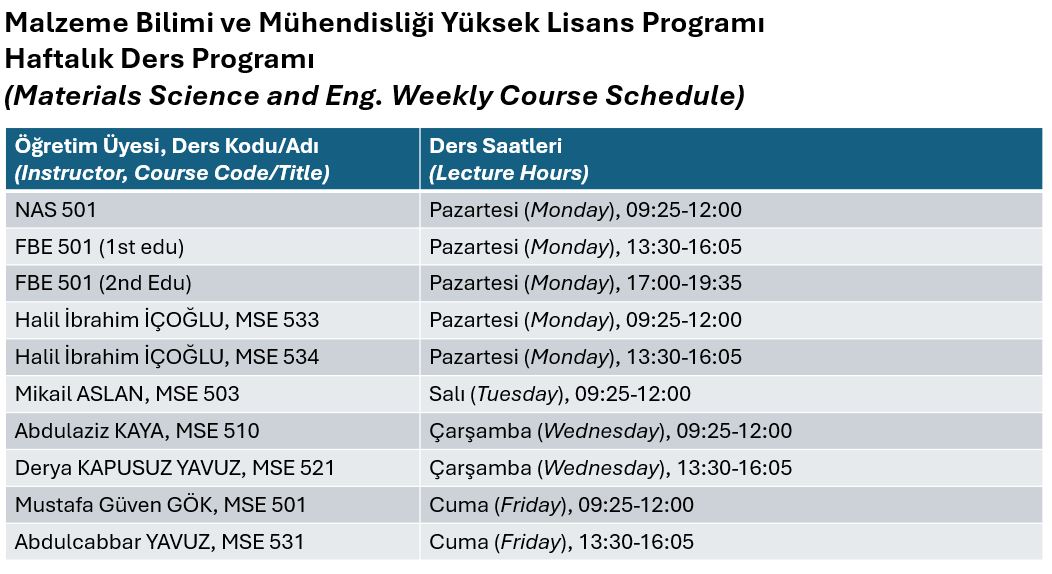 2025-2026 SPRİNG SEMESTER WEEKLY COURSE SCHEDULE